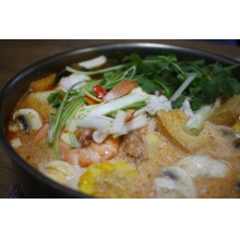 主要将羊骨头一起投入大锅里熬汤,再将切成砣的新鲜羊肉与清洗干净的羊杂一起投入汤锅中煮。煮熟后捞起来沥干,然后切成薄片放入滚开水里一汆,再倒入汤碗中,冲入滚烫雪白的羊汤水,撒上碧绿的葱花,一碗热气腾腾,香气四溢的羊肉汤就做成了。配上一个由辣椒油、花椒面、盐、味精等调料调配的蘸碟就成羊肉汤。