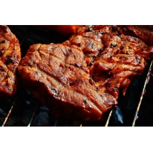 1、将猪宰杀后,去内脏,褪毛,清洗干净,去骨每间隔2厘米左右划割一刀深度约0.5厘米。对于厚的肉质部分先切片成两层,再顺竖刀切割间隔仍约2厘米,整个猪划切完后搓配料。