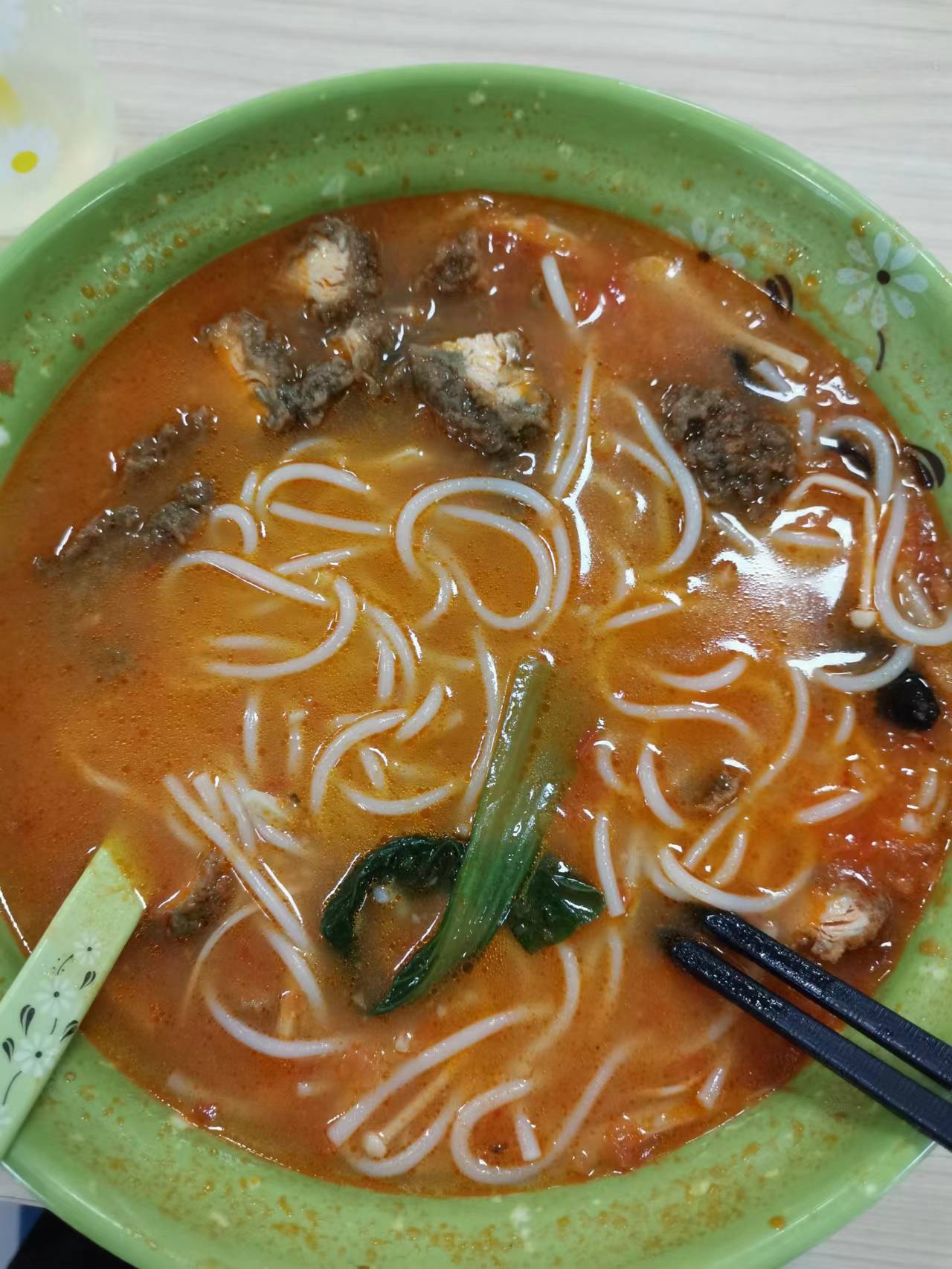 于是她先把肥鸡、筒子骨等熟好清汤,上覆厚厚鸡油;米线在家烫好,而不少配料切得薄薄的到岛上后用滚油烫熟,之后加入米线,鲜香滑爽。