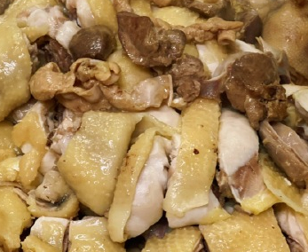 白斩鸡形状美观,皮黄肉白,肥嫩鲜美,滋味异常鲜美,十分可口,肉色洁白皮带黄油,具有葱油香味,葱段打花镶边,食时佐以姜蓉、蒜泥、酱油,保持了鸡肉的鲜美、原汁原味,食之别有风味。
